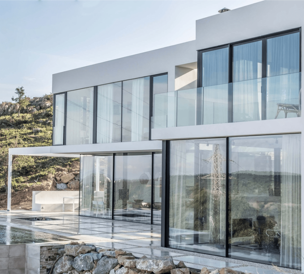 Minimalist sliding systems that combine large glazed areas with high thermal break properties. These sliding window systems come with 13/16” (21 mm) wide mullions and optional concealed hidden rail technology.